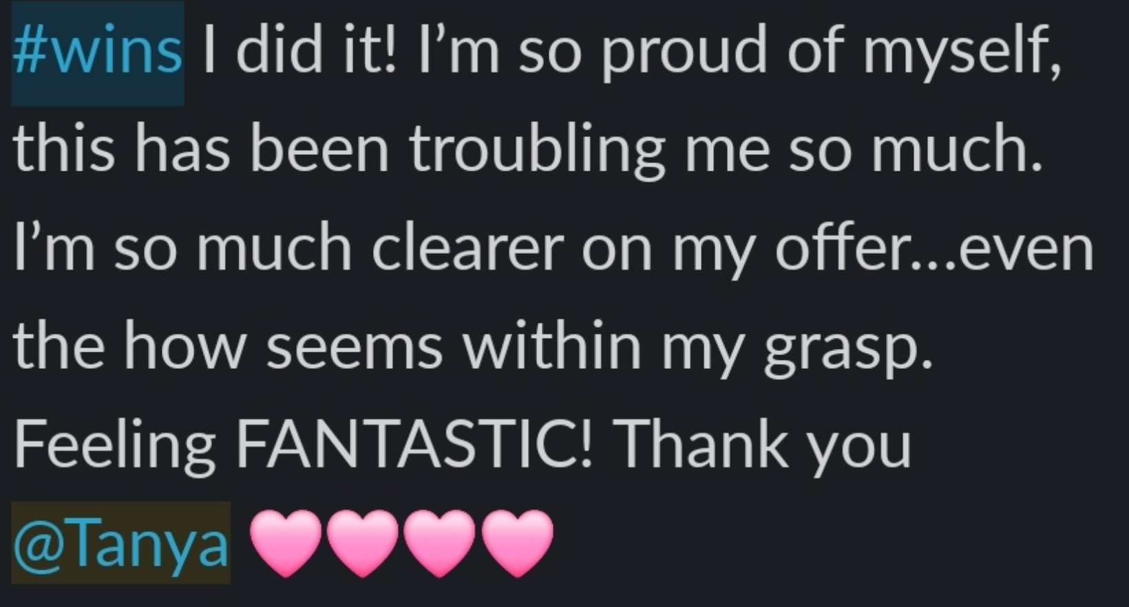 Just daily strategic audio trainings (10-15 mins each) delivered straight to your phone, plus a private Telegram group where you can ask Tanya questions, share wins, and connect with other coaches who are building alongside you.
