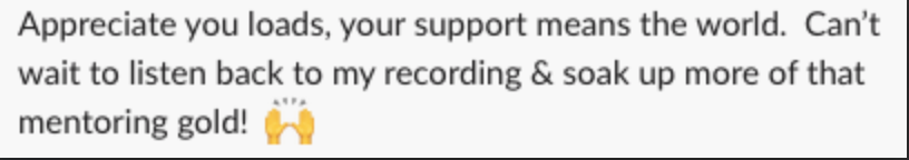 When you post a question or share your work, I'll often reply via voice note. My clients call these "liquid gold" - but what that actually means is: real, honest, strategic guidance that helps you move forward fast.